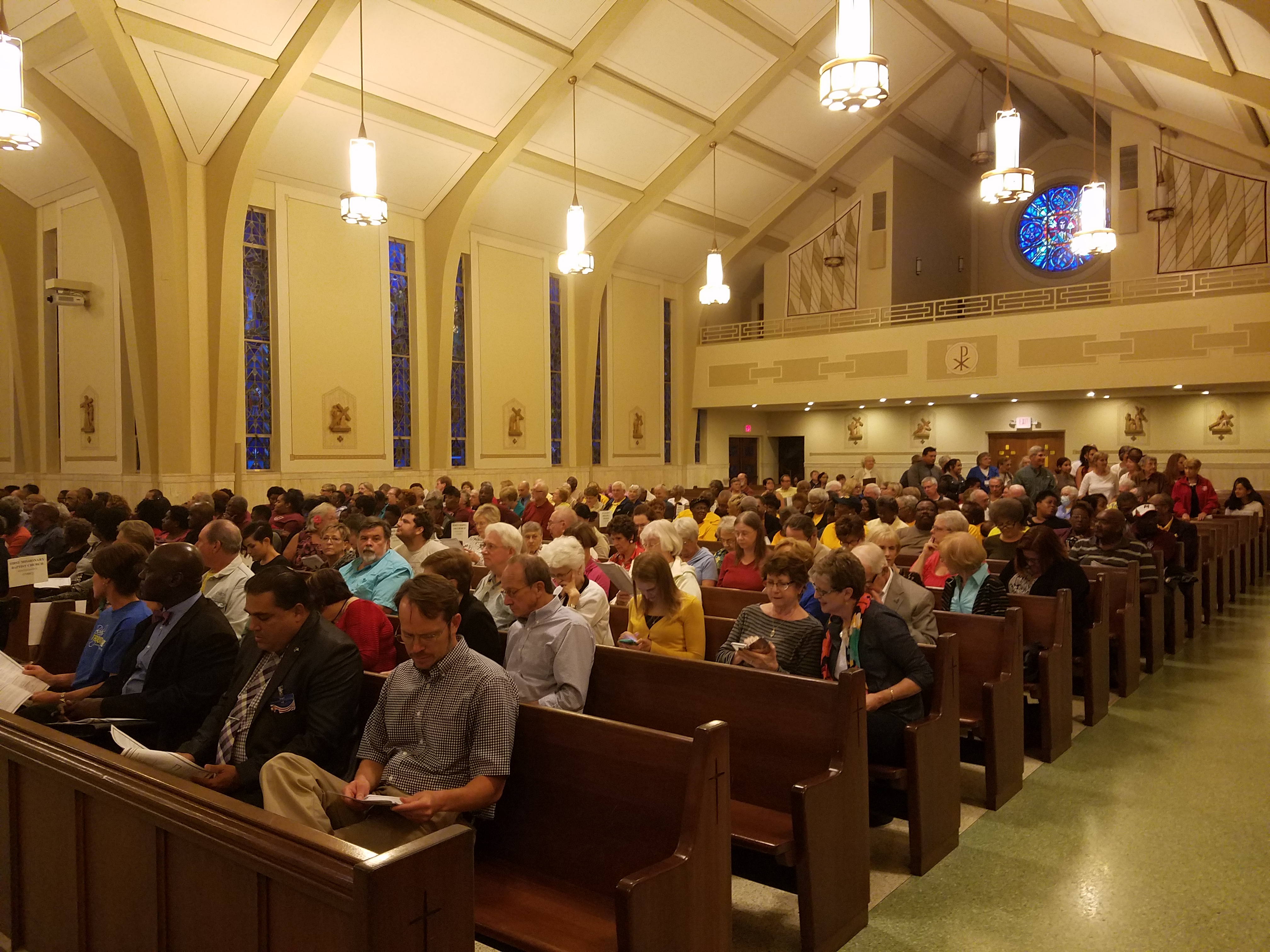 The Polk Ecumenical Council for Empowerment (PEACE) is one organization that allows us to come together to solve the issues of our local community. PEACE works diligently alongside community leaders to ensure Polk County continues to bring justice and mercy to the needs of its citizens. On October 24th, 20 local Churches bringing over 300 people, gathered together at St Joseph Catholic Church for the Community Action Problems Assembly of PEACE. The purpose of the assembly was to discuss the issues that PEACE will attempt to tackle this year. St Matthew had 5 parishioners in attendance at the event.